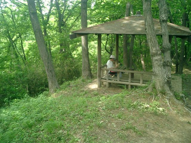 汗をかいてひと休み。風が心地良い。 |